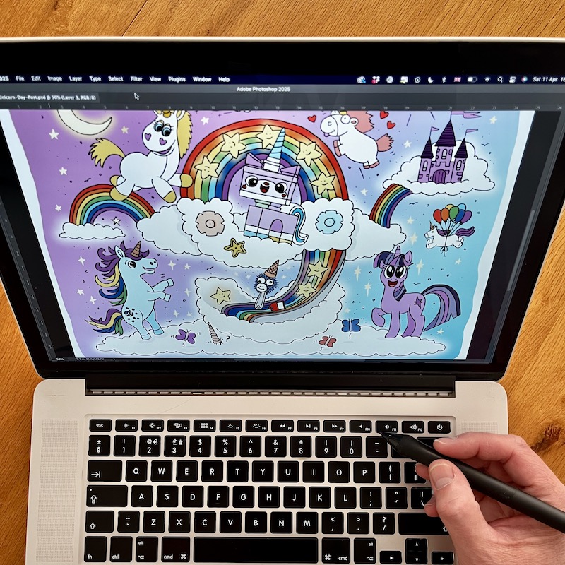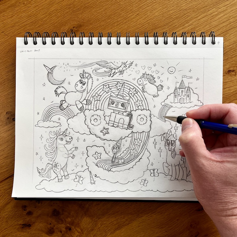 Here are Kevin’s insights into the final Unicorn Day cartoon — exploring how he brought it to life through drawing, colour, and visual references.